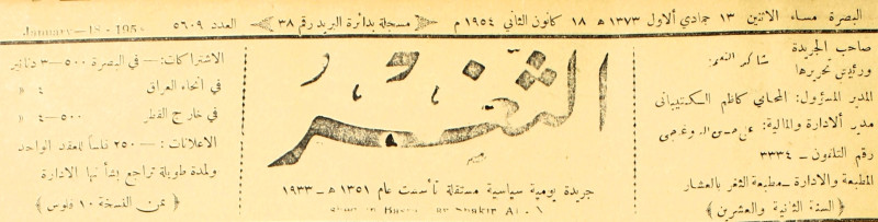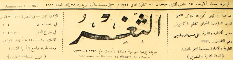 جريدة يومية سياسية عامة = AL-Thaghr : A Daily Newspaper