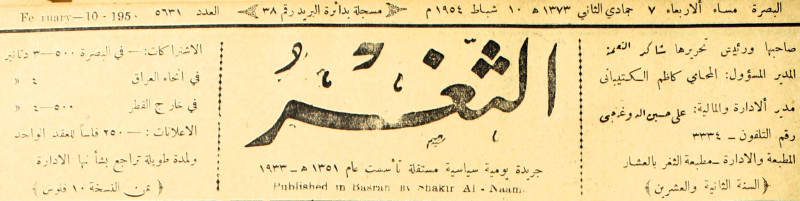 صاحبها ورئيس تحريرها : شاكر النعمة.