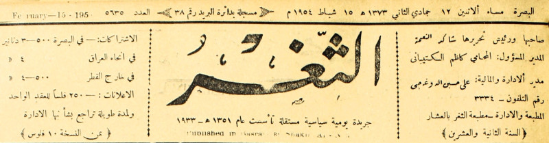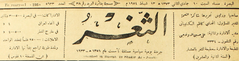 جريدة يومية سياسية عامة = AL-Thaghr : A Daily Newspaper