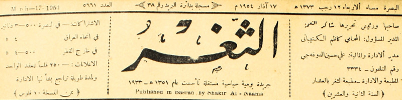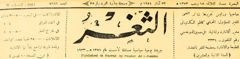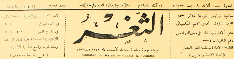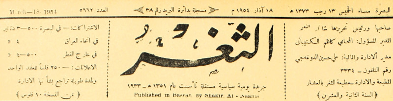 جريدة يومية سياسية عامة = AL-Thaghr : A Daily Newspaper