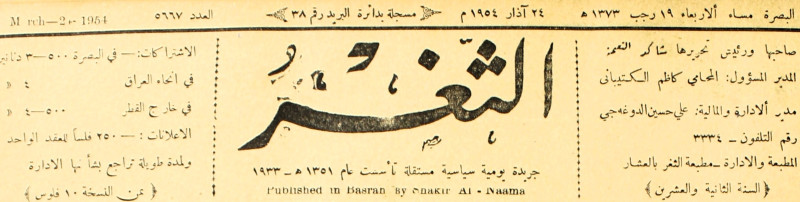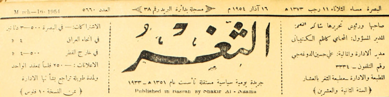 صاحبها ورئيس تحريرها : شاكر النعمة.
