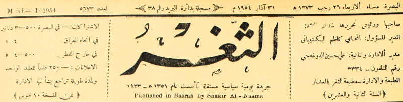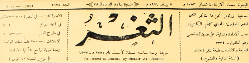 صاحبها ورئيس تحريرها : شاكر النعمة.