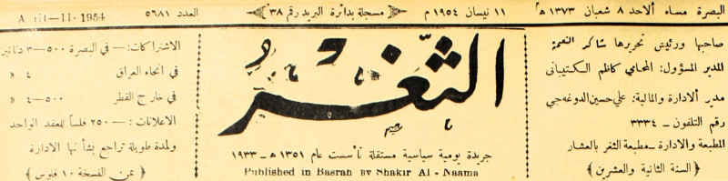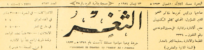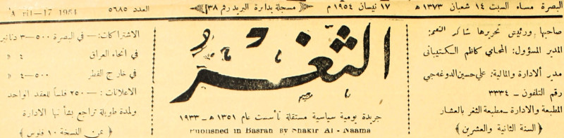 جريدة يومية سياسية عامة = AL-Thaghr : A Daily Newspaper