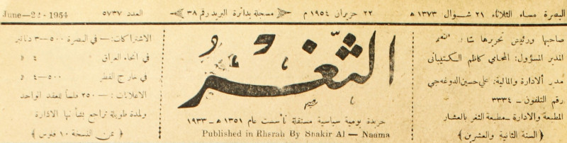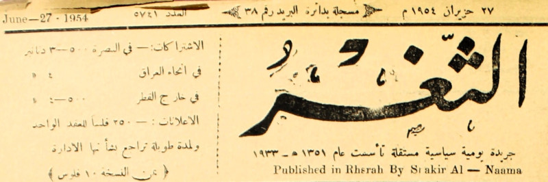 جريدة يومية سياسية عامة = AL-Thaghr : A Daily Newspaper