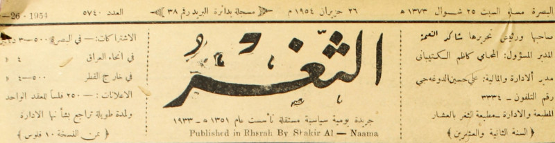 صاحبها ورئيس تحريرها : شاكر النعمة.