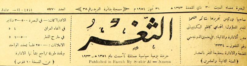 جريدة يومية سياسية عامة = AL-Thaghr : A Daily Newspaper