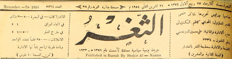 صاحبها ورئيس تحريرها : شاكر النعمة.