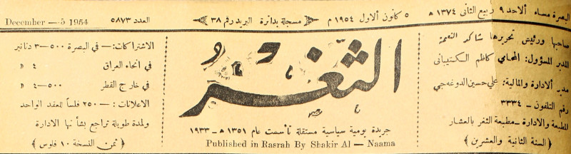 صاحبها ورئيس تحريرها : شاكر النعمة.