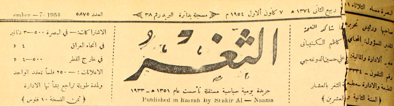 جريدة يومية سياسية عامة = AL-Thaghr : A Daily Newspaper