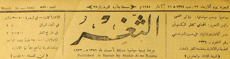 صاحبها ورئيس تحريرها : شاكر النعمة.