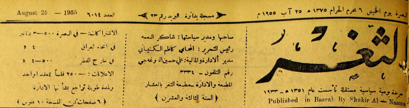 صاحبها ورئيس تحريرها : شاكر النعمة.