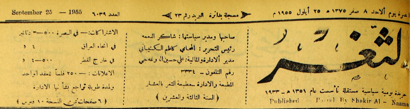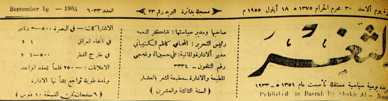 صاحبها ورئيس تحريرها : شاكر النعمة.