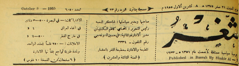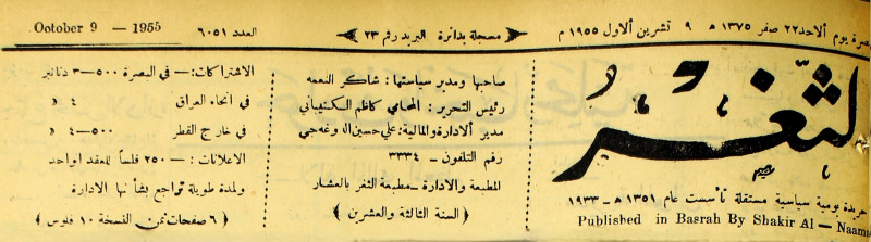 صاحبها ورئيس تحريرها : شاكر النعمة.