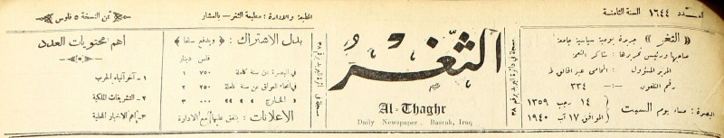 جريدة يومية سياسية عامة = AL-Thaghr : A Daily Newspaper