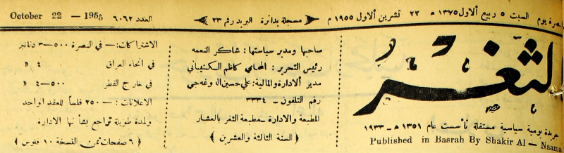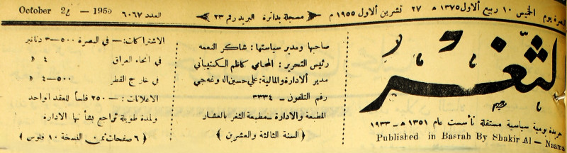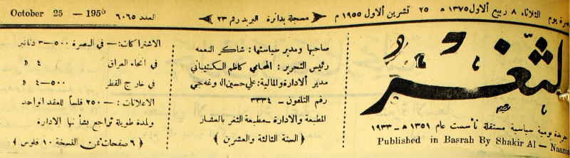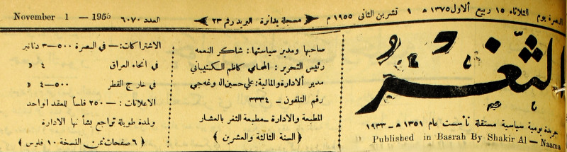 صاحبها ورئيس تحريرها : شاكر النعمة.