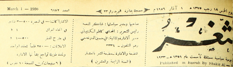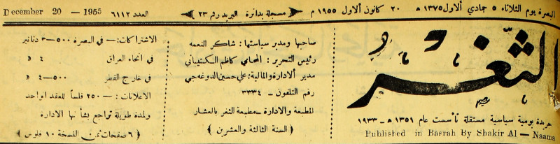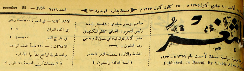 صاحبها ورئيس تحريرها : شاكر النعمة.