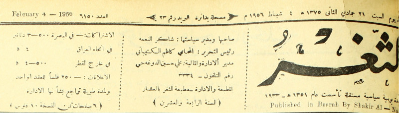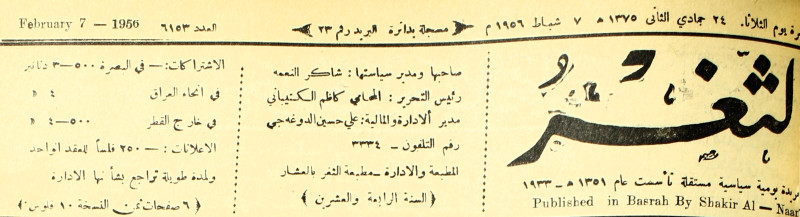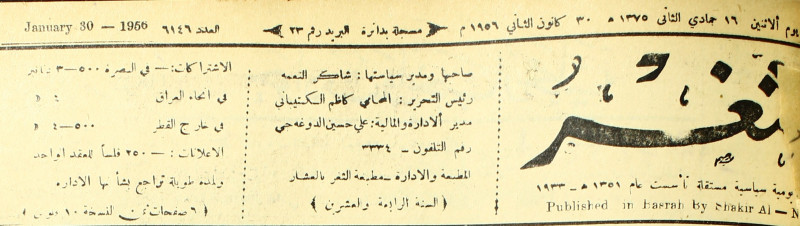 صاحبها ورئيس تحريرها : شاكر النعمة.