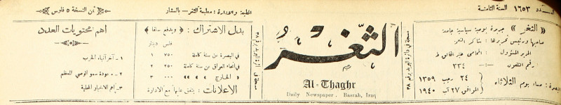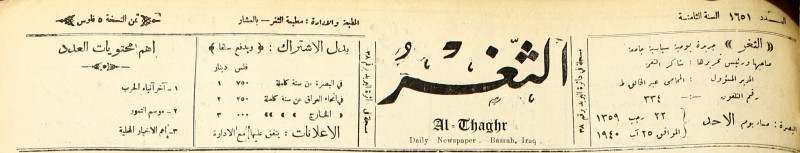 جريدة يومية سياسية عامة = AL-Thaghr : A Daily Newspaper