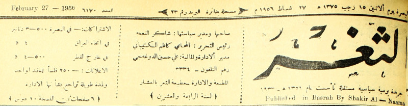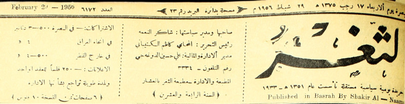 صاحبها ورئيس تحريرها : شاكر النعمة.