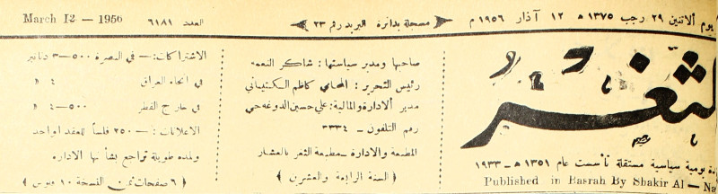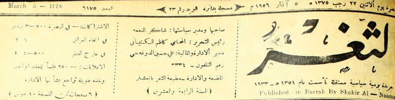 صاحبها ورئيس تحريرها : شاكر النعمة.