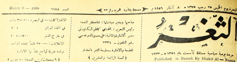 جريدة يومية سياسية عامة = AL-Thaghr : A Daily Newspaper