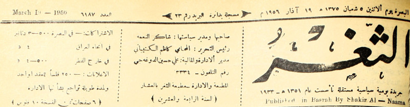صاحبها ورئيس تحريرها : شاكر النعمة.
