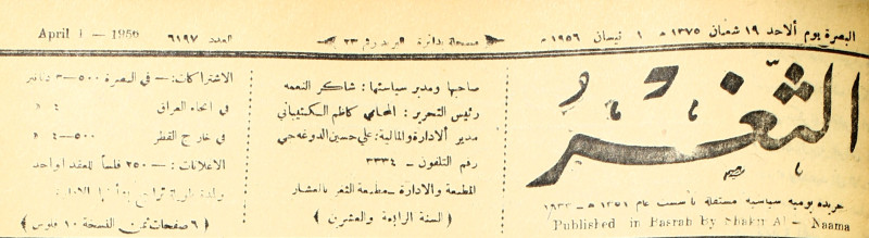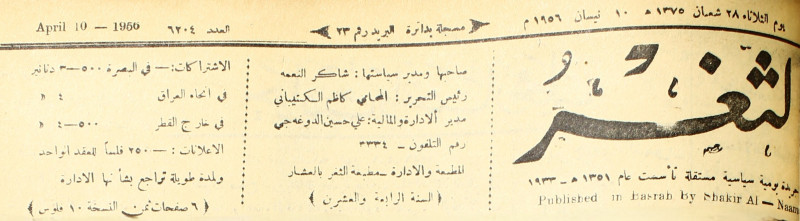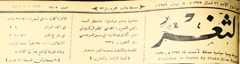 صاحبها ورئيس تحريرها : شاكر النعمة.