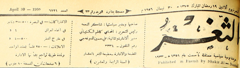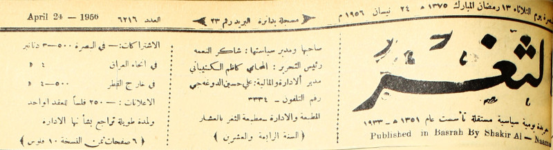 صاحبها ورئيس تحريرها : شاكر النعمة.