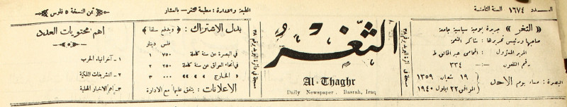 جريدة يومية سياسية عامة = AL-Thaghr : A Daily Newspaper