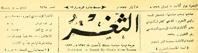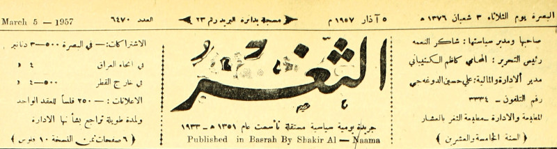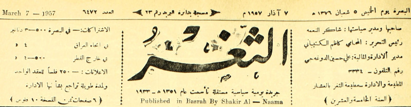 جريدة يومية سياسية عامة = AL-Thaghr : A Daily Newspaper
