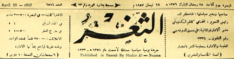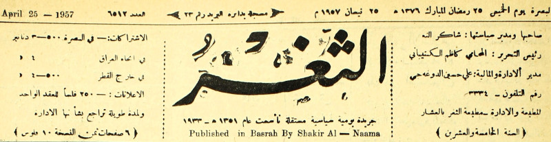 صاحبها ورئيس تحريرها : شاكر النعمة.