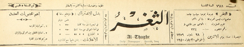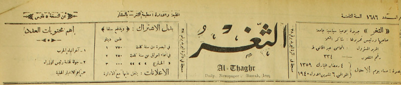 جريدة يومية سياسية عامة = AL-Thaghr : A Daily Newspaper