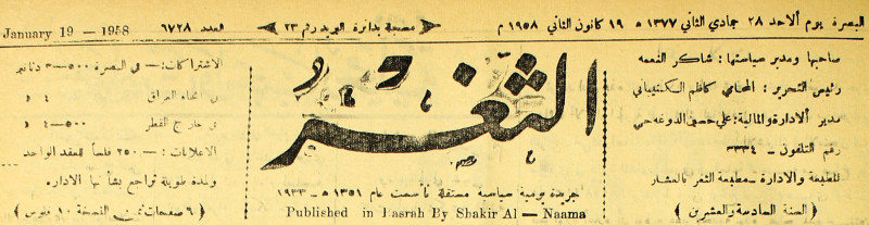 جريدة يومية سياسية عامة = AL-Thaghr : A Daily Newspaper