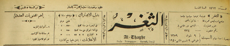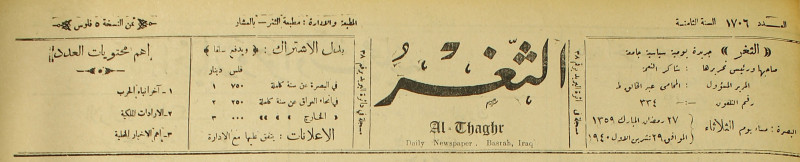 جريدة يومية سياسية عامة = AL-Thaghr : A Daily Newspaper