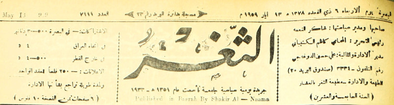 صاحبها ورئيس تحريرها : شاكر النعمة.