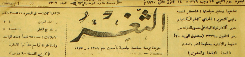 جريدة يومية سياسية عامة = AL-Thaghr : A Daily Newspaper