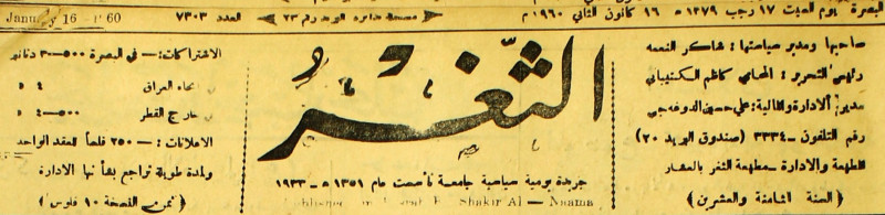 صاحبها ورئيس تحريرها : شاكر النعمة.
