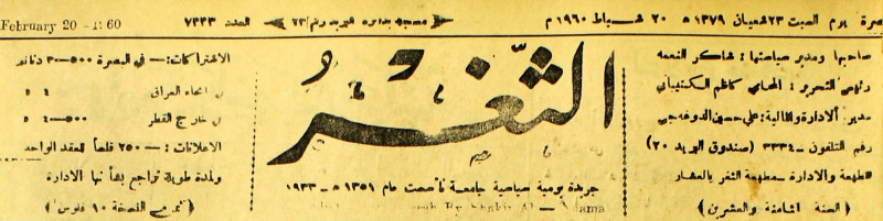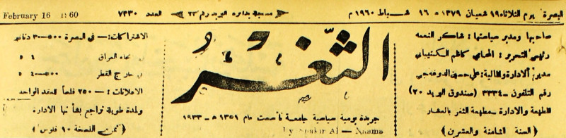 جريدة يومية سياسية عامة = AL-Thaghr : A Daily Newspaper