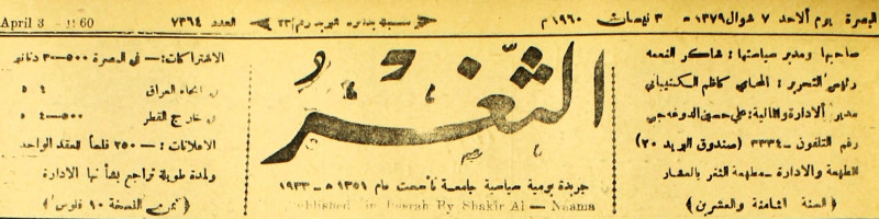 صاحبها ورئيس تحريرها : شاكر النعمة.