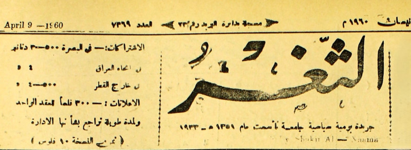 جريدة يومية سياسية عامة = AL-Thaghr : A Daily Newspaper