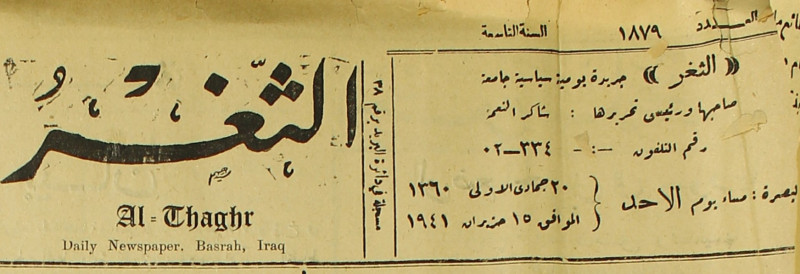 جريدة يومية سياسية عامة = AL-Thaghr : A Daily Newspaper