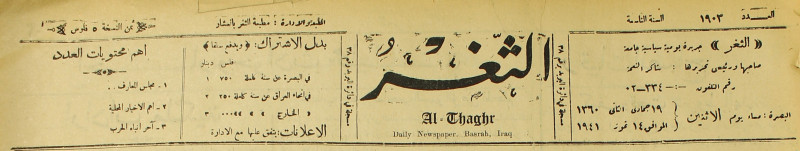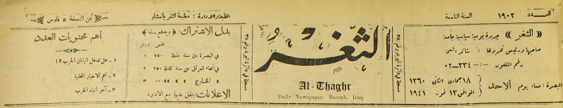جريدة يومية سياسية عامة = AL-Thaghr : A Daily Newspaper