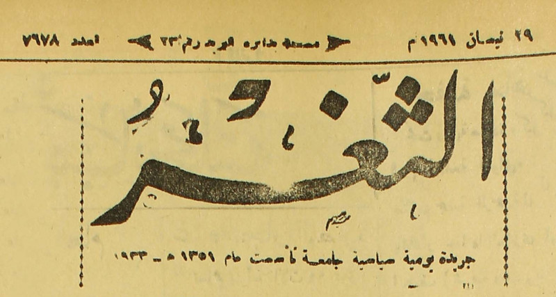 جريدة يومية سياسية عامة = AL-Thaghr : A Daily Newspaper