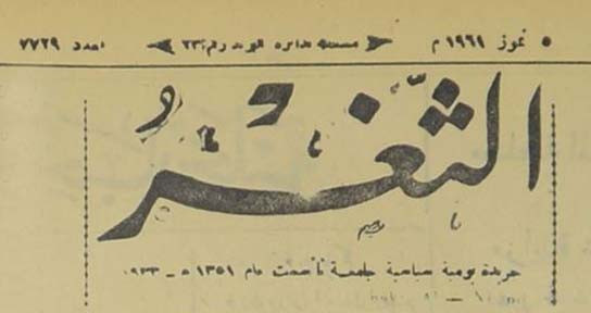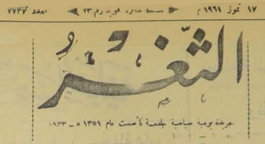 جريدة يومية سياسية عامة = AL-Thaghr : A Daily Newspaper