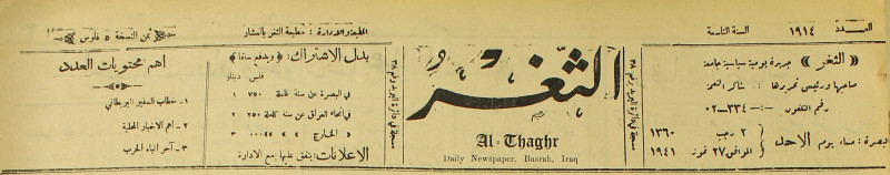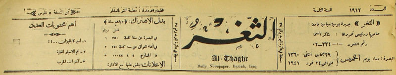 جريدة يومية سياسية عامة = AL-Thaghr : A Daily Newspaper