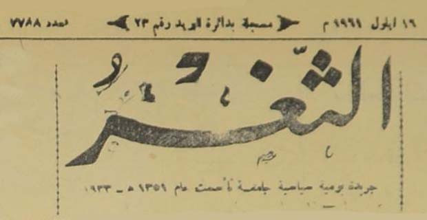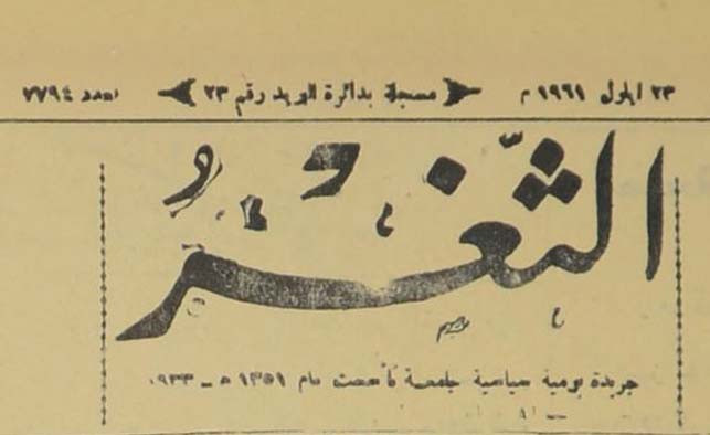 جريدة يومية سياسية عامة = AL-Thaghr : A Daily Newspaper