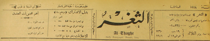 جريدة يومية سياسية عامة = AL-Thaghr : A Daily Newspaper