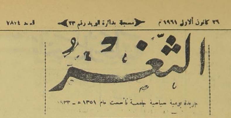 جريدة يومية سياسية عامة = AL-Thaghr : A Daily Newspaper