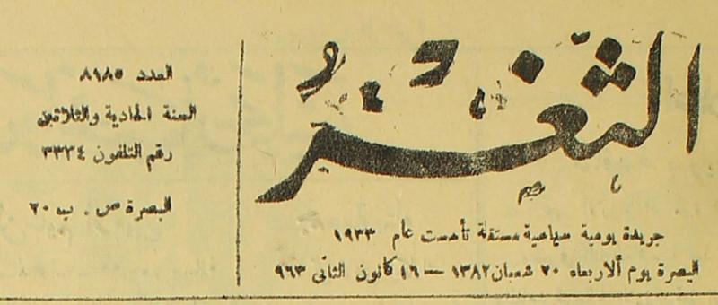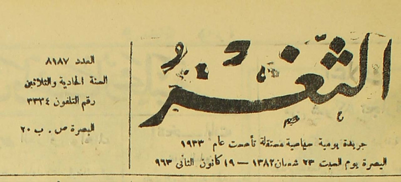 جريدة يومية سياسية عامة = AL-Thaghr : A Daily Newspaper