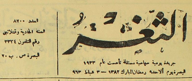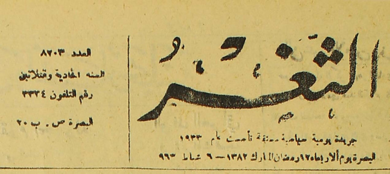جريدة يومية سياسية عامة = AL-Thaghr : A Daily Newspaper